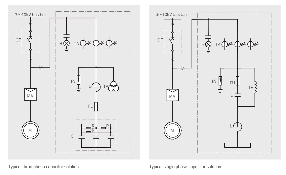 配备优质三相或单相高压电力电容器,可靠性高、寿命长、运行温度低;
